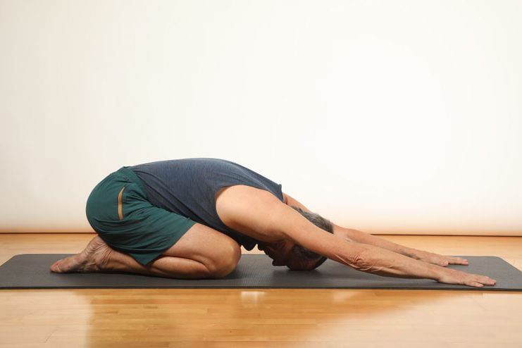 Siéntate sobre los talones y estira los brazos hacia delante. Relaja la espalda y reduce el estrés.