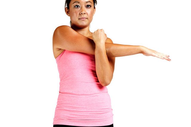 Cruza un brazo por delante del pecho y presiónalo. Reduce la tensión en los hombros.